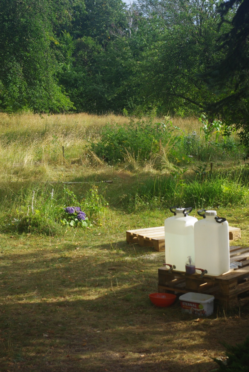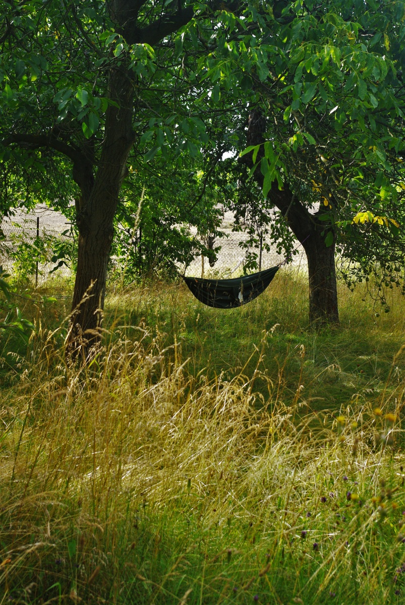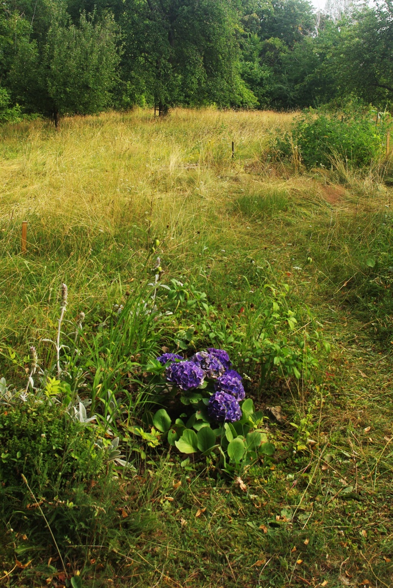 Abych přežila v průmyslové zóně, našel můj úžasný muž úžasnou zahradu. Kouzelnou. Plnou ptačího zpěvu, trávy, šumění stromů. Prožili jsme tam neopakovatelné léto v neopakovatelné sestavě. S babičkou, dětmi vlastními i takřka vlastními, s takřka vodícím psem a dvěma slepičkami z klecového odchovu statečnými jak jejich jména - Piper a Tris.